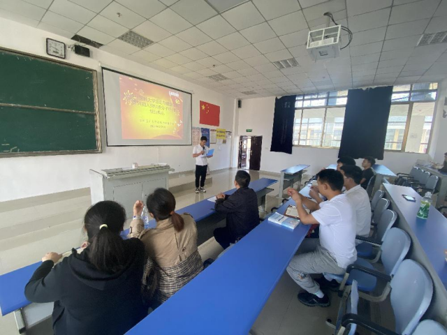 入党积极分子代表球盟会2020级社会体育指导与管理专业员工穆军军作了学习感想交流。