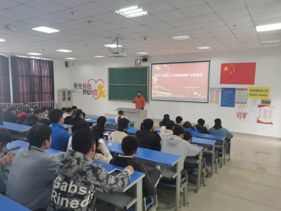 支部书记蔡啸领学了党的二十大报告原文,着重学习了关于“实施科教兴国战略,强化现代会建设人才支撑”篇目。蔡啸强调,支部所有党员要认真领会领悟党的二十大精神实质,把理论学习与自己的学习生活相结合,在感悟中学、在实践中学。把理论学习和坚定自身理想信念和自我发展相结合。一心向党,明确在党的二十大报告中提出的党在新征程上举什么旗、走什么路、以什么样的精神状态、朝着什么样的目标继续前进。不负习近平总书记在党的二十大报告中“要坚定不移听党话、跟党走,怀抱梦想又脚踏实地,敢想敢为又善作善成,立志做有理想、敢担当、能吃苦、肯奋斗的新时代好青年,让青春在全面建设社会主义现代化国家的火热实践中绽放绚丽之花。”谆谆教诲和殷殷嘱托。