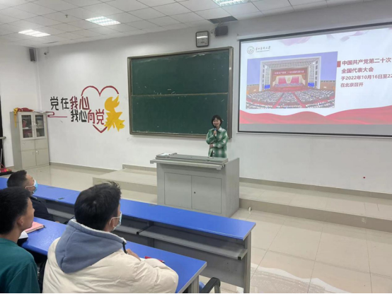 陈颖部长从中国共产党二十次全国代表大会会议主题、二十大报告重要内容解读、深入学习宣传贯彻党的二十大精神等三个方面,为所有员工党员进行了一次生动的宣讲。宣讲言简意赅、深入浅出、重点突出,同学们聚精会神地享受了一餐精神大宴,进一步提高了大家对党的二十大精神实质的理解,进一步坚定了跟党走的信心和决心,进一步明确了自己前进的方向和努力的奋斗目标。
