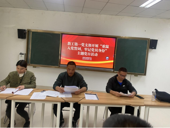 4月12日中午,教工第一党支部在公司三楼研究生多媒体教室召开了支部 “重温入党誓词、牢记党员身份”主题党日活动,活动由支部书记史伟主持。