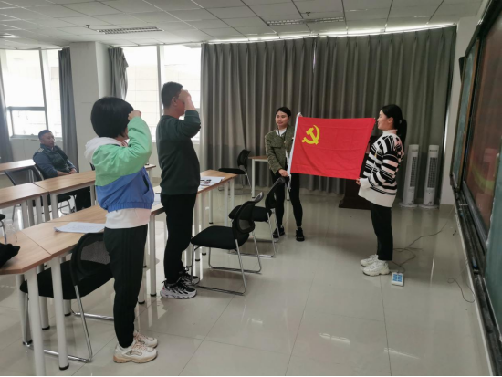 史伟带领支部预备党员陈晓洋同志开展了入党宣誓活动,党委书记姚思勤对陈晓洋同志表示了祝贺,并强调在今后的工作和学习中要增强大局意识、责任意识,深刻领悟习近平新时代中国特色社会主义思想内涵,时刻以一名正式党员标准严格要求自己。