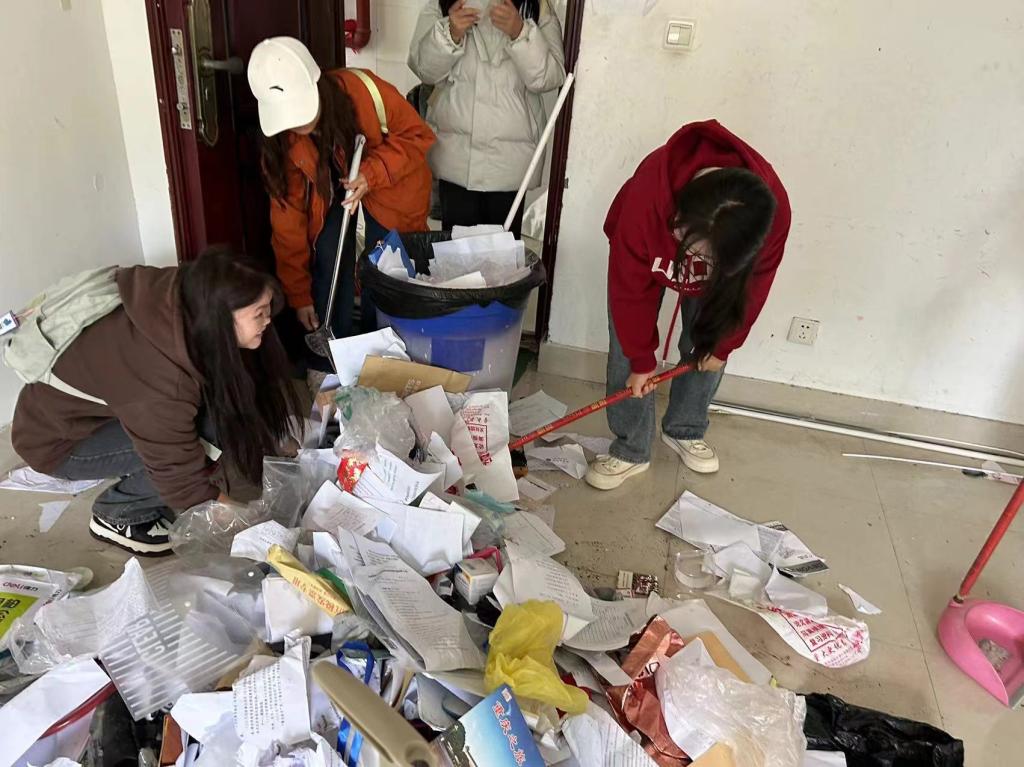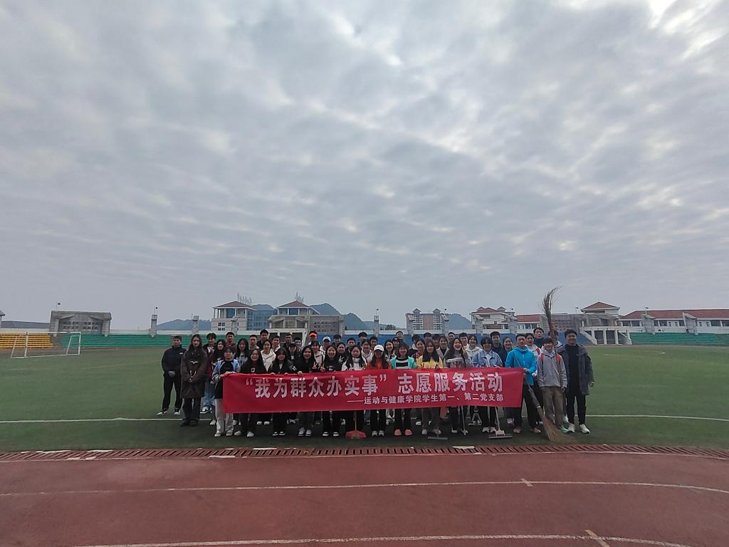 员工第一、第二党支部全体党员分为两个志愿小队,对体育馆所有器材室、运动场、办公室、楼道、走廊等进行排查,所有党员同志对所有场馆进行逐一清扫,不留垃圾,不留死角。