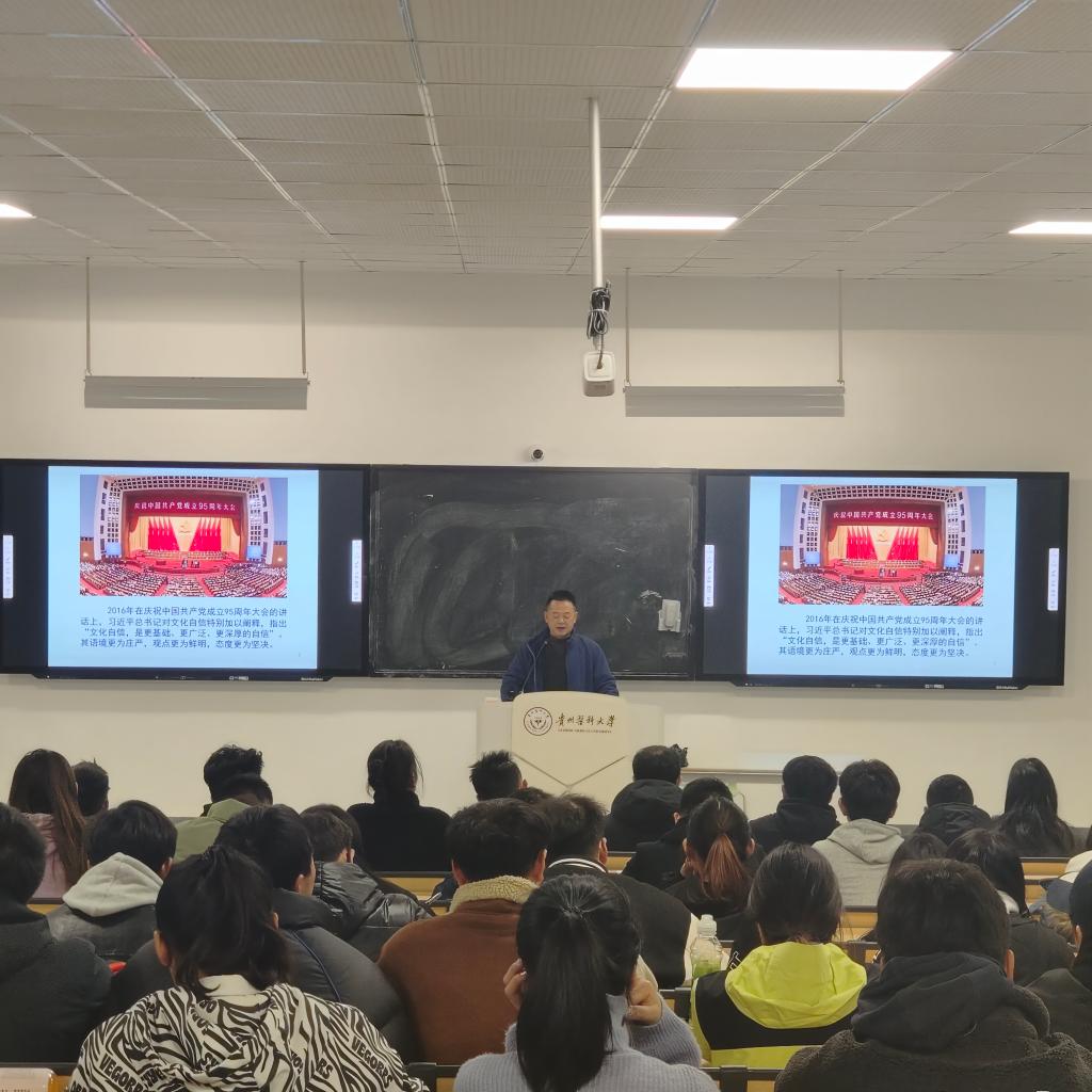 专题党课围绕习近平总书记关于“文化自信”的重要论述展开,从论述中理解“文化自信”的本质、根源及意义。他强调文化自信是“更基础、更广泛、更深厚的自信”,是“更基本、更深沉、更持久的力量”,深刻阐明了文化对中国特色社会主义道路、理论、制度的深层支撑作用,同时指出文化是实现中华民族伟大复兴的精神力量源泉。中国人的“文化自信”源自于博大精深、源远流长的中华优秀传统文化,源自于刚健激越、百折不挠的革命文化,源自于团结奋斗、与时俱进的社会主义先进文化,我们要将“文化自信”熔铸于新时代中国特色社会主义建设的实践中,不断推动文化繁荣兴盛。