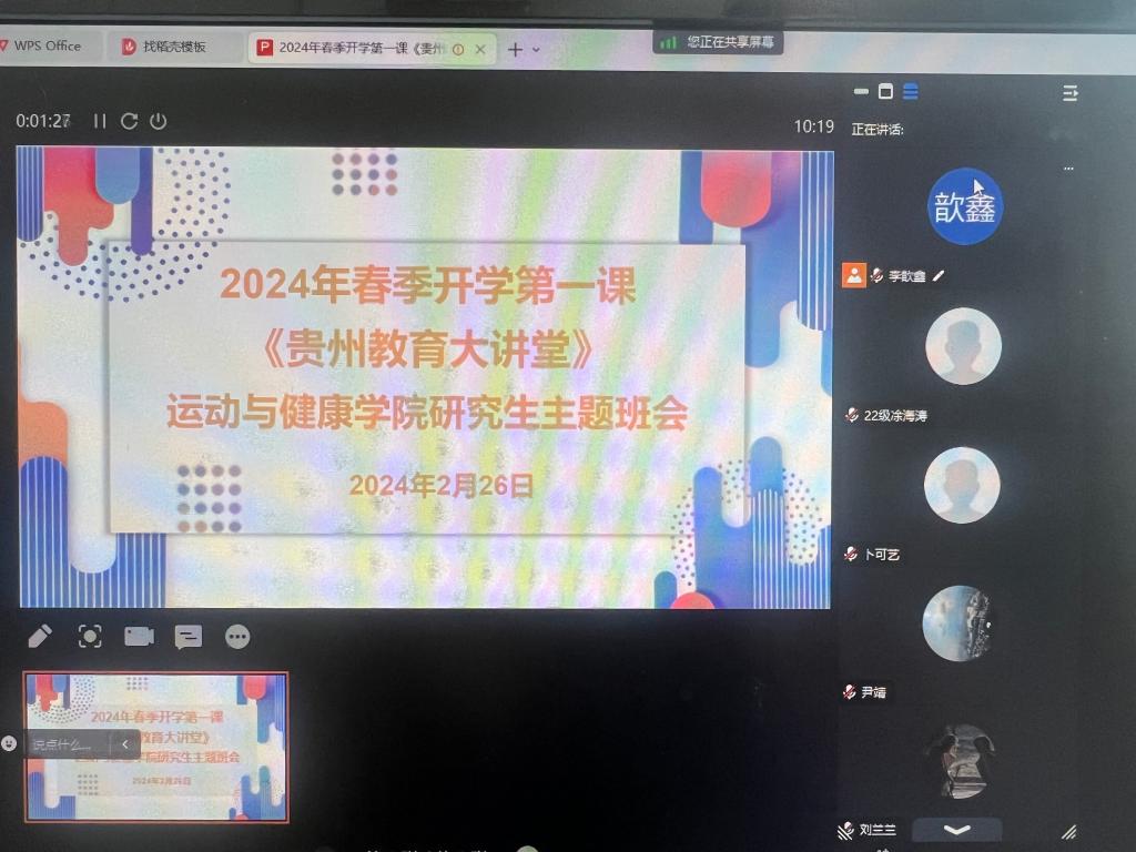 2月26日上午9:00,为切实提升公司研究生的安全意识和自我防范能力,预防和减少校园安全事故的发生,球盟会全体研究生通过腾讯会议集中收看“贵州教育大讲堂”——《珍爱生命之美》大讲堂。观看结束后,辅导员李歆鑫组织开展本学期第一次安全校园主题班会活动。