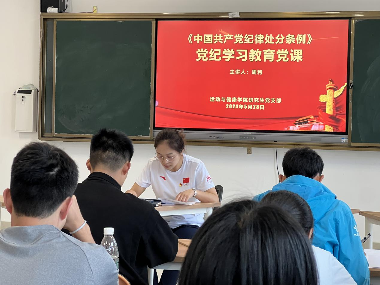 为切实抓好对新修订的《中国共产党纪律处分条例》的学习贯彻落实,做到学纪、知纪、明纪、守纪,搞清楚党的纪律规矩是什么,弄明白能干什么、不能干什么,同时增强员工党员的纪律意识,提高员工党员的党性修养,5月28日下午,球盟会研究生党支部在体育馆M层党员活动室举行党纪学习教育专题党课。支部书记周利主讲,全体党员参加。