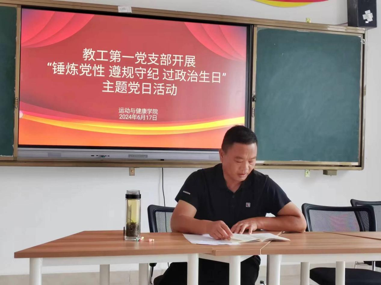 6月17日中午,球盟会教工第一党支部在体育馆M层党员活动室开展了“锤炼党性 遵规守纪 过政治生日”主题党日活动。活动由支部书记史伟主持,支部党员参加了此次活动。
