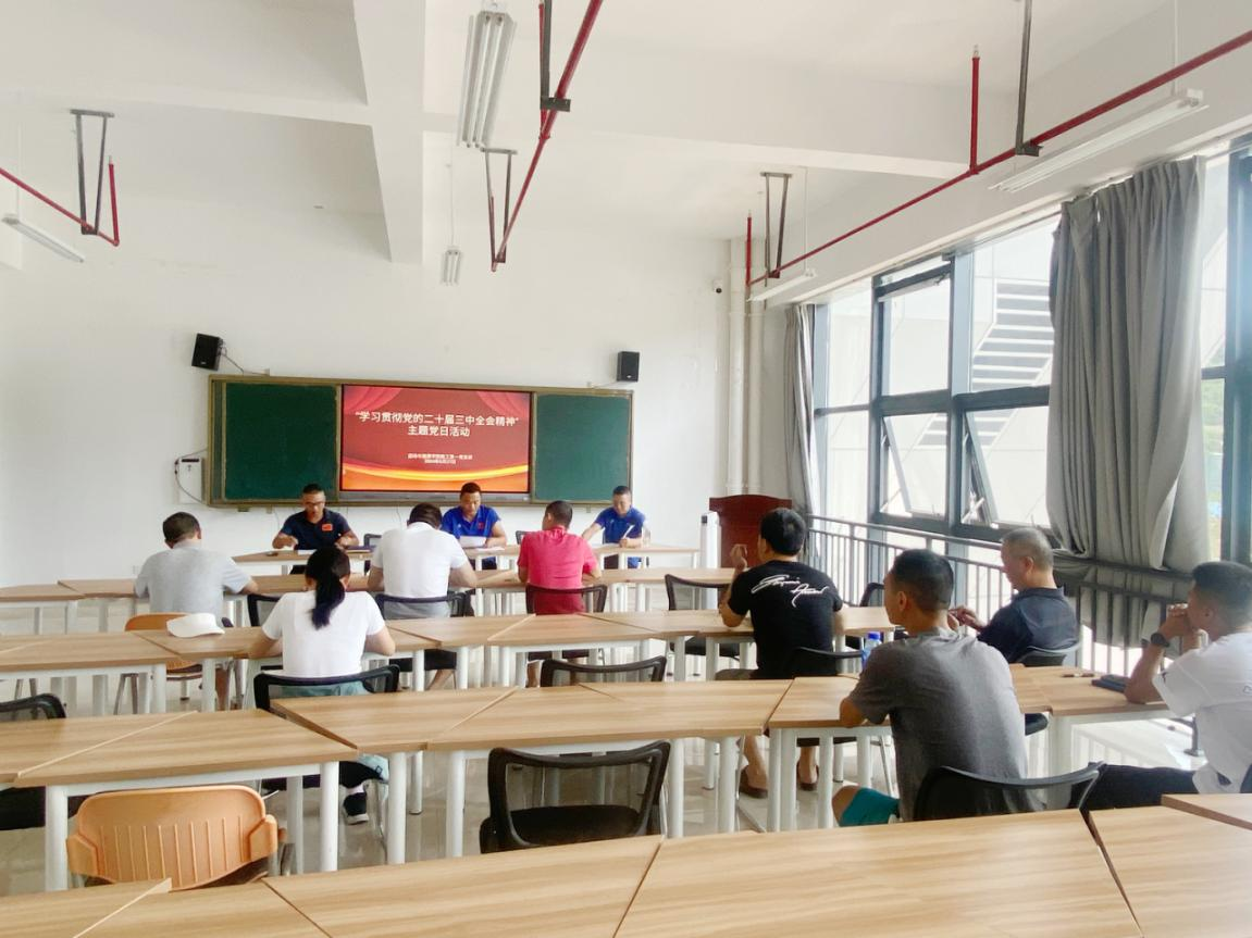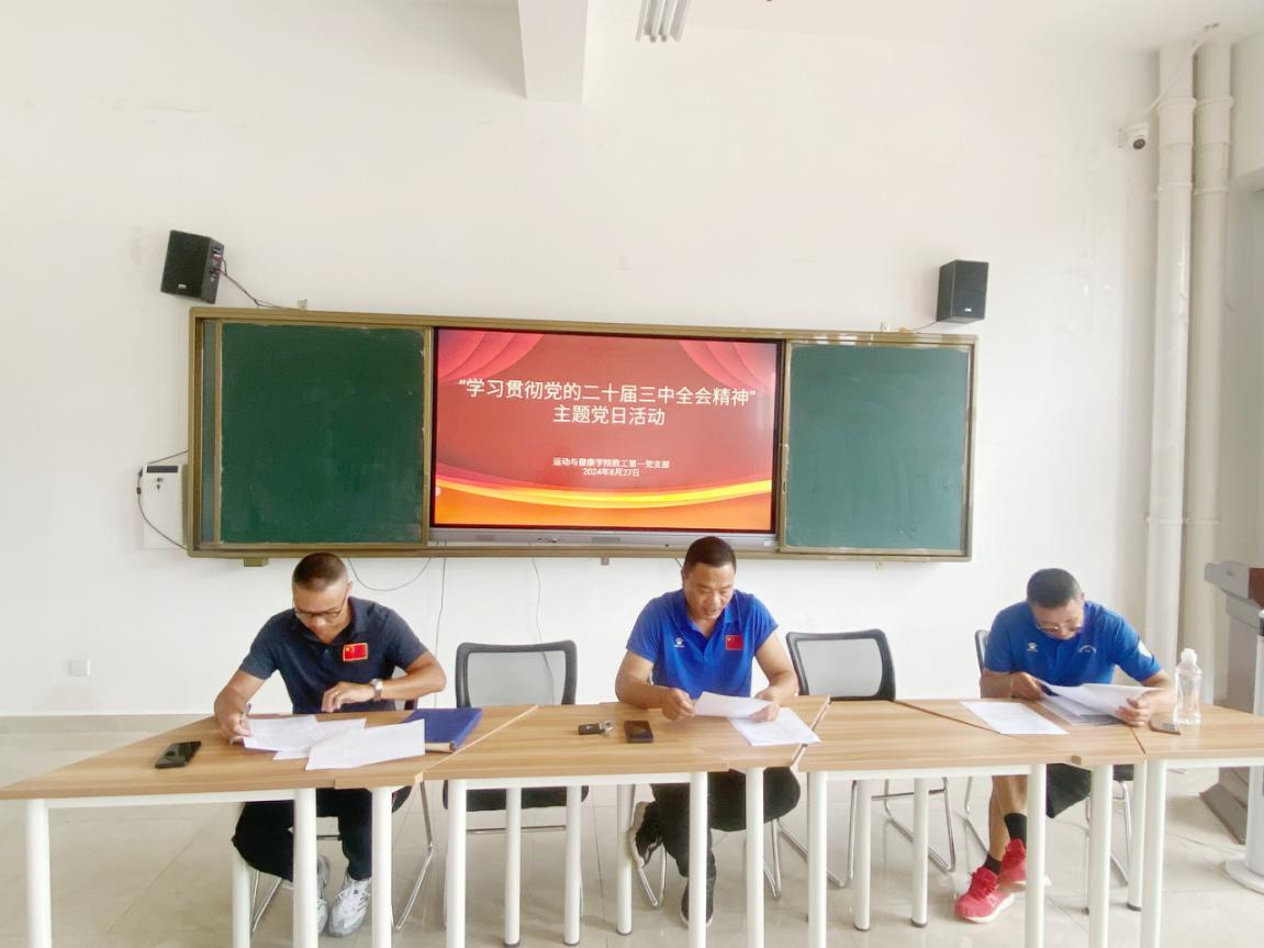 8月27日中午,教工第一党支部在体育馆M层教师党员活动室开展了“学习贯彻党的二十届三中全会精神”主题党日,活动由支部书记史伟主持,支部党员参加会议。