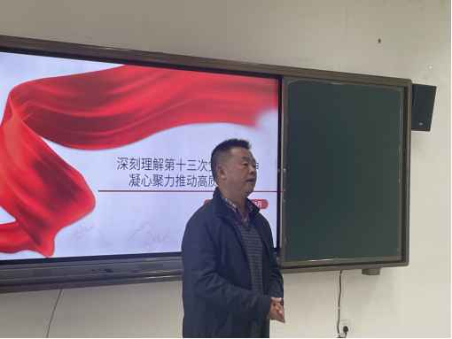 姚思勤生动的从贵州过去、现在、未来三个维度,并结合个人的所知所见,全面、生动的解读了贵州省第十三次党代会精神。并在讲授中勉励同学和教师,作为这个全新时代的体育人,不仅仅要学好专业技能,更要提升自己的政治素养和文化素养,做一个体育文化人,做健康的传播者和健康文化的开拓者。他指出,第十三次党代会的成功召开意味着贵州将迎来发展的新的黄金时期,我们要抢抓机遇乘势而上,在贵州高质量发展的历程中,坚定信念跟党走,把自身的发展与家乡的发展有机结合,在新时代贵州高质量发展中做出自己的贡献。