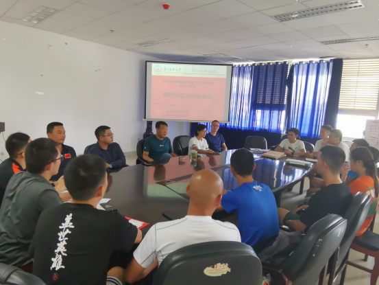 2020年8月25日中午,公司2020级体育专业硕士研究生新生见面会在公司三楼会议室召开。参加会议的有硕士研究生导师组成员,分别为:国伟教授、周利副教授、史伟副教授、蔡啸副教授、彭召方副教授,公司教学科研管理科副科长兼研究生辅导员张油福老师及2020级全体硕士研究生。