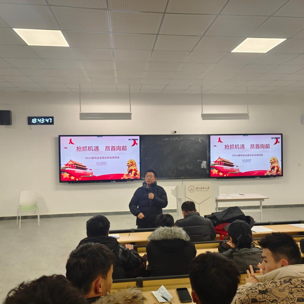2024年1月3日18:00,为贯彻落实公司2024届毕业生就业创业工作精神,使毕业生明确当前严峻的就业形势,抢前抓早,迅速行动,引导毕业生树立正确的职业观、就业观和择业观,球盟会2024届毕业生第一次就业创业动员会在云漫湖校区生工L507教室召开。公司党委书记姚思勤、党委副书记蔡啸,团委副书记(毕业班辅导员)艾登科参会。