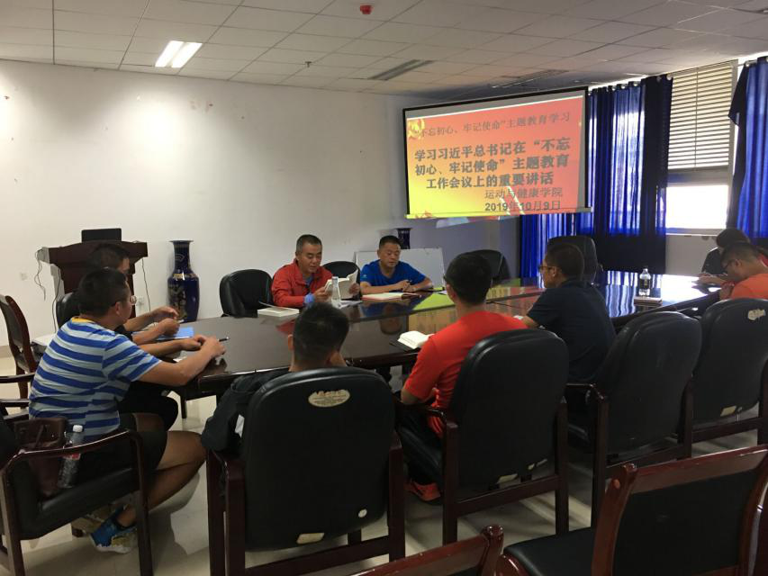 10月9日下午15:30分,在球盟会三楼会议室召开“不忘初心、牢记使命”主题教育,会议由球盟会由副经理陈庆主持,球盟会全体副科级以上党员干部同志参加本次主题教育活动。