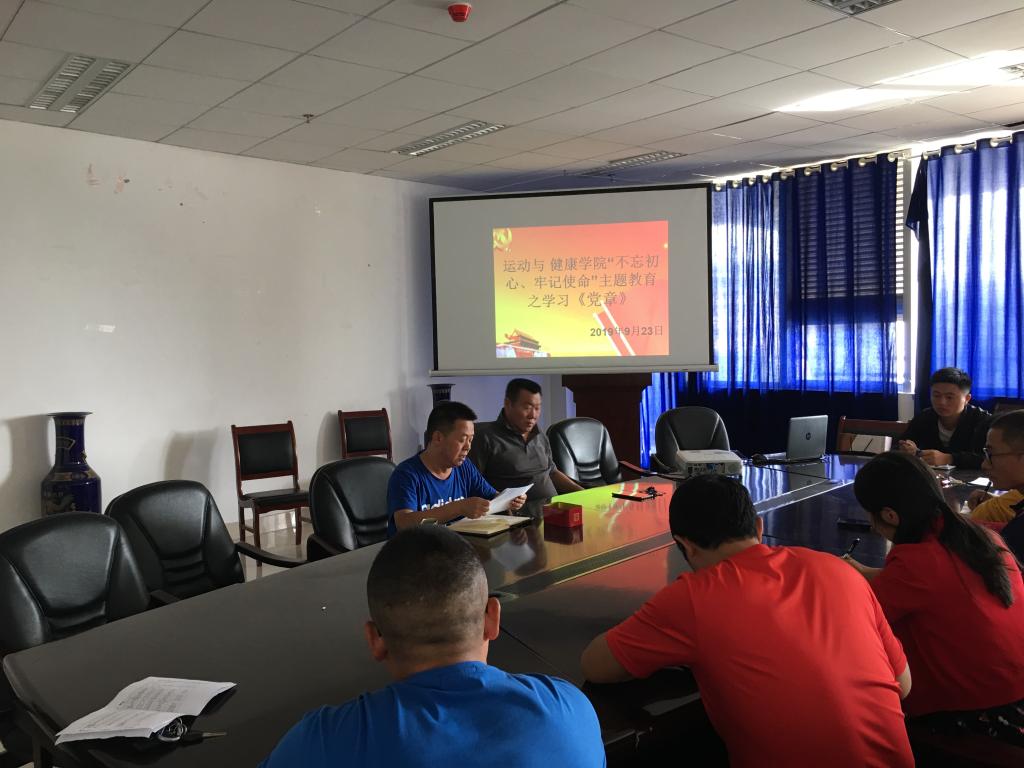 9月23日下午15:30分,球盟会在体育馆三楼会议室召开“不忘初心、牢记使命”主题教育集中学习会议,会议由党委书记姚思勤主持,球盟会副科级以上干部及教研室负责同志参加。