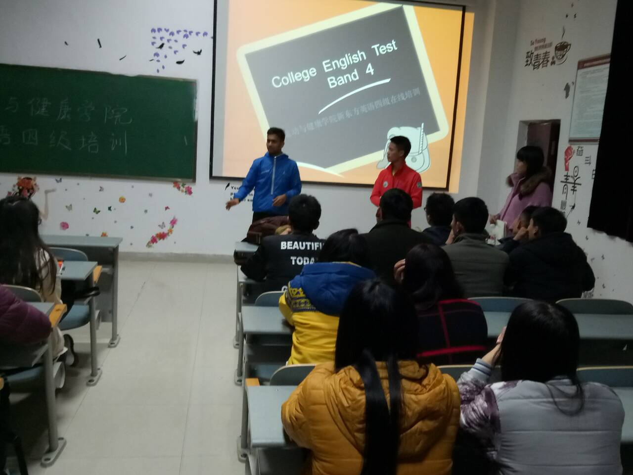 在培训会上祝老师讲到很多同学特别是学体育的员工大多存在英语基础相对薄弱,英语学习重视不够的现象。祝老师结合招聘信息给大家讲了英语在工作和生活中的重要性来提高大家的积极性。Pravin用全英文和大家积极交流英语学习的技巧,研究生师兄也结合自己的学习经验和师弟师妹们积极交流、对话。同学们都积极响应,点燃了英语学习的热情,在现场建立了球盟会英语学习交流群,共同学习英语。动员会后祝老师组织同学们继续在线学习新东方英语。这样的集中英语学习活动我们还将每个周周末18:30分在1505教室按时在线学习新东方英语。同时欢迎同学们积极加入球盟会的英语交流群,群号是:624154359。我们将在群里定期开展英语学习活动,分享英语资料。真诚希望同学们坚持用心学习,争取通过英语四级考试。