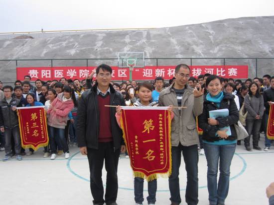 11月13日下午1:00,贵阳医公司“迎新杯”拔河比赛在新校区篮球场如期举行。本次比赛由贵阳医公司新校区管委会主办,大学体育教学部承办,比赛办法采取抽签淘汰制方式进行,共有22支代表队参加比赛。比赛场上,各参赛队及其啦啦队员热情高涨,加油声此起彼伏,不绝于耳,场面热烈壮观。经过各参赛队的激烈角逐,最终决出了前八名优胜队,分别是:第一名:临床医学B班队;第二名:口腔医学队;第三名:定向甲班队;第四名:临床医学C班队;第五名:预防医学队;第六名:耳鼻喉与重症队;第七名:护理本科与护理专科联队;第八名:生物技术与生物工程联队。赛后,院办主任罗鹏及大学体育教学部书记兰玲分别给各获奖代表队颁奖。本次拔河比赛充分展示了公司2012级新生的蓬勃朝气及其奋勇争先不甘落后的精神风貌,很好地增进了各系部员工之间的合作与交流,同时极大地增强了各系部员工的团队凝聚力和集体荣誉感。