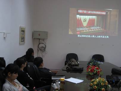2012年4月26日早上9:00,根据《关于进一步推进严肃换届纪律深入整治用人上不正之风的实施方案》(黔组发〔2012〕4号)的要求及院纪委和党委组织部的通知要求,大学体育教学部直属党支部组织全体教职工在部会议室认真观看了严肃换届纪律工作宣传片《战斗正未有穷期》。我部教职工应到27人,实到21人,上课3人,3人未到。