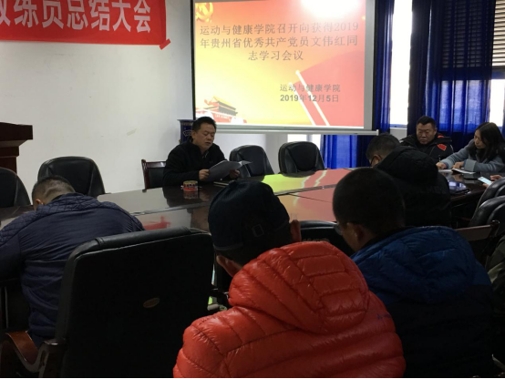 12月5号,公司于体育馆三楼会议室召开了向2019年贵州省优秀共产党员获得者文伟红学习会议,全院教职工参会,会议由姚思勤书记主持。