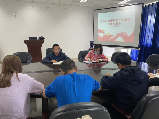6月4日上午,球盟会在体育馆三楼会议室召开安全维稳工作会议,会议由党委书记姚思勤同志主持,公司综合办公室、员工科、教学管理科所有人员参加。