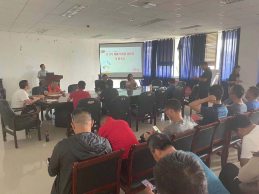 6月8日中午,球盟会在体育馆三楼会议室召开师德师风专题会议,会议由党委书记姚思勤同志主持,公司全体教职工参加。