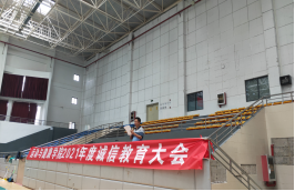 为进一步加强诚信考试教育,严肃考风考纪,7月5日中午12点,球盟会全体员工,以及参与本学期监考的所有监考老师,在体育馆篮球场召开了全院诚信考试动员大会。参加会议的领导和老师有公司党委书记姚思勤、副书记陈庆、副经理周利、全体辅导员。会议由球盟会员工管理科科长蔡啸主持。