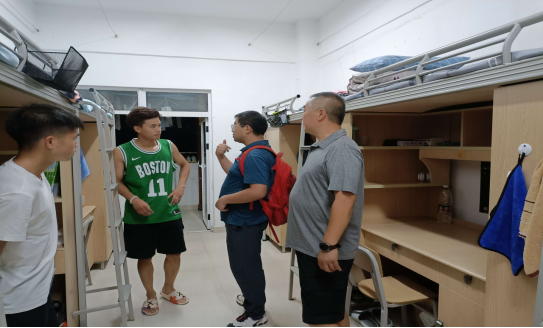 在巡查过程中公司党委副书记陈庆书记,深入员工寝室,检查员工寝室环境,并对节日期间安全离校、疫情防控、用水用电、寝室管理等方面的安全事宜对员工进行了提示,告知员工要遵守公司相关规定,办理好相关的手续,出现突发事件第一时间向辅导员通报。并督促员工管理科、辅导员、班主任做好员工节假日期间的管理,做好风险防控预案、制定相应值班制度,维护好节庆期间校园安全和谐的环境。