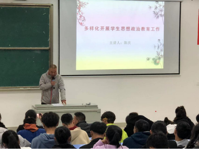 11月10日晚,球盟会官网党委副书记陈庆以“多样化开展员工思想政治教育工作”为题,为联系班级上了思想政治课。