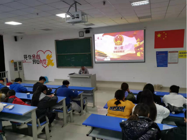 11月15日晚,公司党委副书记陈庆在教学楼1603教室为第11期发展对象短期集中培训班学员上了题为“学习新党章、了解新党章、贯彻新党章”的专题党课。
