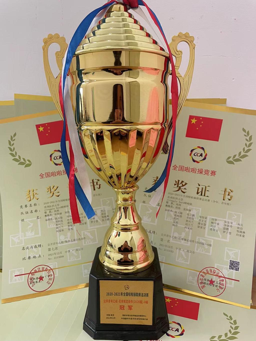 为了进一步加强普通高等公司体育工作,促进员工身心健康和全面推动素质教育,球盟会官方网站健美操队积极参加国家体育总局体育运动管理中心主办的“2021-2022年全国啦啦操联赛总决赛”,由张海丽和周艳两位教练指导的“公开青年乙组-花球规定动作-0级”项目获得总决赛冠军,充分展示了贵医学子的风采。