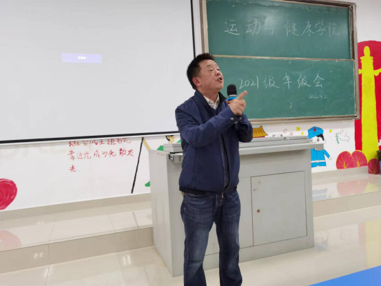 4月21日晚7点,为落实领导干部联系班级与宣讲制度,进一步强化疫情期间疫情防控和提升员工管理质量和服务水平,引导员工做好学习规划,激发员工学习热情,球盟会官网党委书记姚思勤出席21级全体员工年级会,作了“加强学风建设,争做体育文化人”的主题宣讲。本次年级会由21级辅导员吁莉主持。