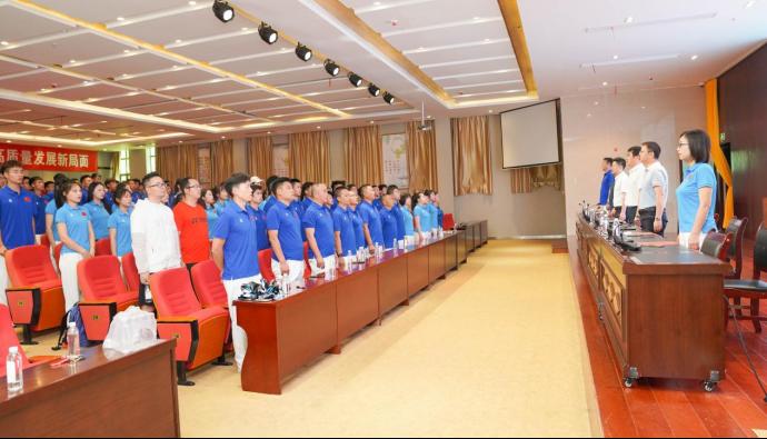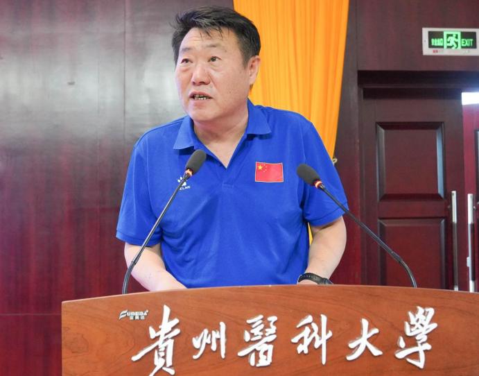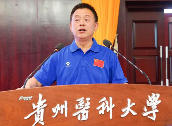 国伟汇报了近年来球盟会的专业建设、团队建设和公司建设方面发展情况、取得的成果,以及在攀岩、滑板、定向等项目引领下,公司在体育竞赛方面每年取得许多全国冠军,取得较好成绩。尤其是今年公司培养的运动员龙见国代表国家在2022国际攀联(IFSC)世界杯攀岩赛瑞士维拉尔站速度决赛中获得男子速度冠军,是公司体教融合育人成果的傲人体现。并且播放了龙见国比赛的精彩瞬间和获奖的感言为即将出征的队伍加油助威。公司有田径、羽毛球等9个代表队136名队员和25名教练员出征贵州省第五届员工运动会,他们已经做好进军贵州省第五届员工运动会的准备,力争为公司取得佳绩,展现贵医风采。