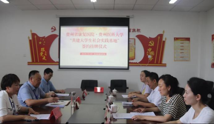 社会实践团队一行得到贵州省康复医院领导及家长的热烈欢迎。座谈会上,康复医院支部书记杜飞鹏对医院的整体情况进行了介绍,副经理柴华对儿童康复科的建设历史、取得的成绩和未来的发展做了详细的阐述。姚思勤简要介绍了球盟会的团队建设情况及员工社会实践意义,传达了校团委关于2022年暑期“三下乡”社会实践文件精神。会上,双方对老员工志愿服务和社会劳动实践育人共建模式进行意见交流,就实践基地建设举行挂牌仪式,并签署合作协议。