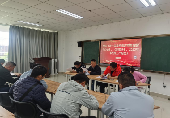 会议第一项进行政治理论学习。姚思勤同志领学《派生国家秘密定密管理暂行办法》、《保密法》、2023年《政府工作报告》;国伟经理领学2023年全省教育工作会议精神;周利副经理领学《关于加强和改进新时代师德师风建设的意见》;蔡啸副书记领学《习近平新时代中国特色社会主义思想学习问答》中“为什么说理想信念是共产党人精神上的“钙”?。姚思勤同志强调全院教师要认真理解《保密法》第四十八条规定的12种保密违规行为,提高保密意识是做好保密工作的主观决定因素。