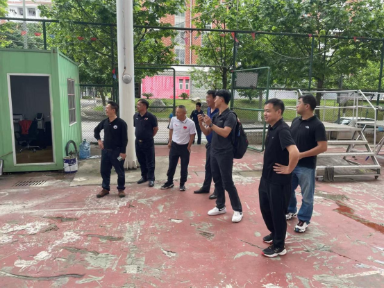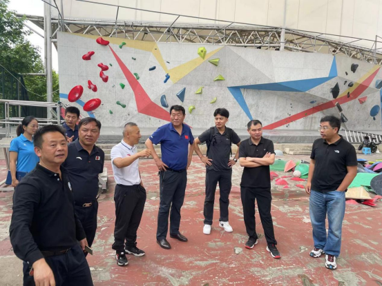 研讨交流结束后,公司党政领导班子带领广州体育公司休闲体育与管理公司廖雄忠书记一行人实地走访了公司攀岩、滑板训练基地及场馆,并进行了深入交流。