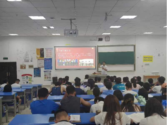 蔡啸深入浅出地从“为什么要学”“怎样学习”“学习的主要内容”三个方面为同学们生动地讲述了一堂党课。详细阐述了习近平新时代中国特色社会主义思想、“十个明确”、“十四个坚持”、“十三个方面成就”等内容。