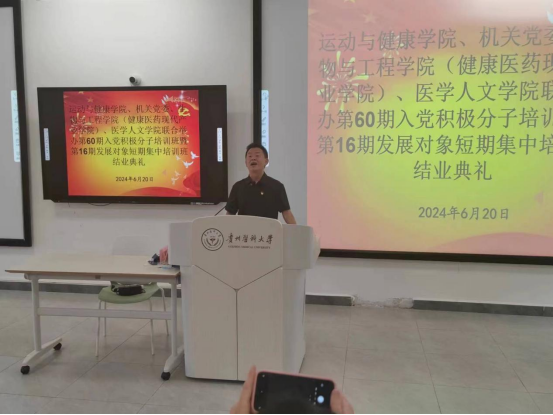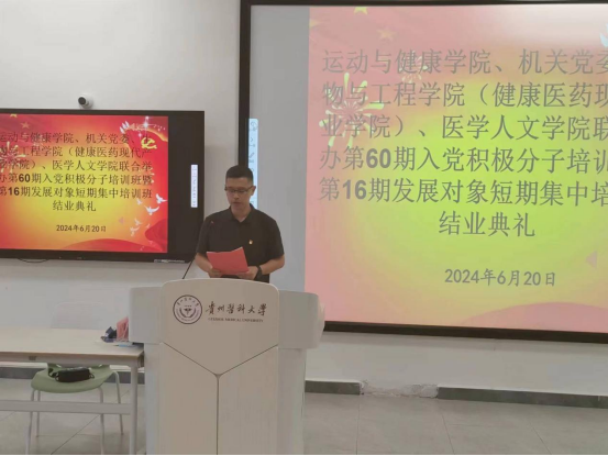 6月20日晚,由球盟会主办,机关党委、生物与工程公司((健康医药现代产业公司))、医学人文公司四个公司合办的球盟会官网入口第60期入党积极分子培训班暨第16期发展对象短期集中培训班在致知楼(药学组团)— 药学L108教室举行。参加本次开班典礼的有球盟会官网党委书记、分党校董事长姚思勤,球盟会官网党委副书记陈伟,医学人文公司组织员谭婷、球盟会组织员赵宇红以及本次培训班的班主任陈卫老师。此次结业典礼由球盟会2023级休闲体育专业员工程则利主持。
