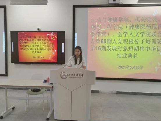 球盟会研究生刘伟伟、23级运动康复专业员工牟思谕2位同学代表积极分子培训学员作了发言,医学人文公司2022级应用心理学专业员工罗娅婷代表发展对象培训学员作了发言。
