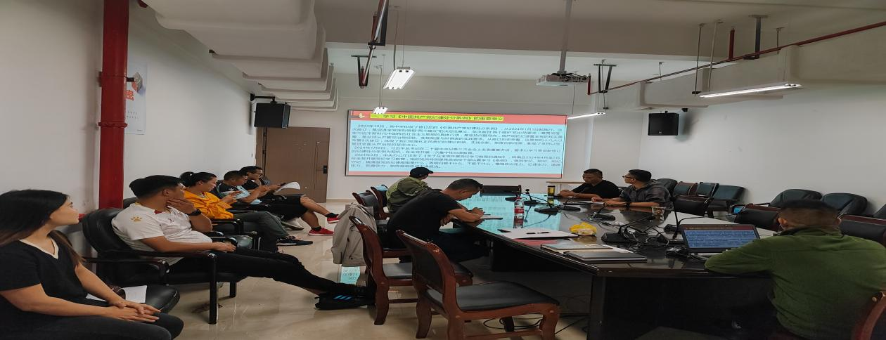 6月26日,公司在体育馆2楼会议室开展《中国共产党纪律处分条例》解读培训会,公司党委书记姚思勤对《中国共产党纪律处分条例》进行了详细解读,公司党委委员、副科级以上干部(包含教研室负责人)、各党支部委员共同参加。