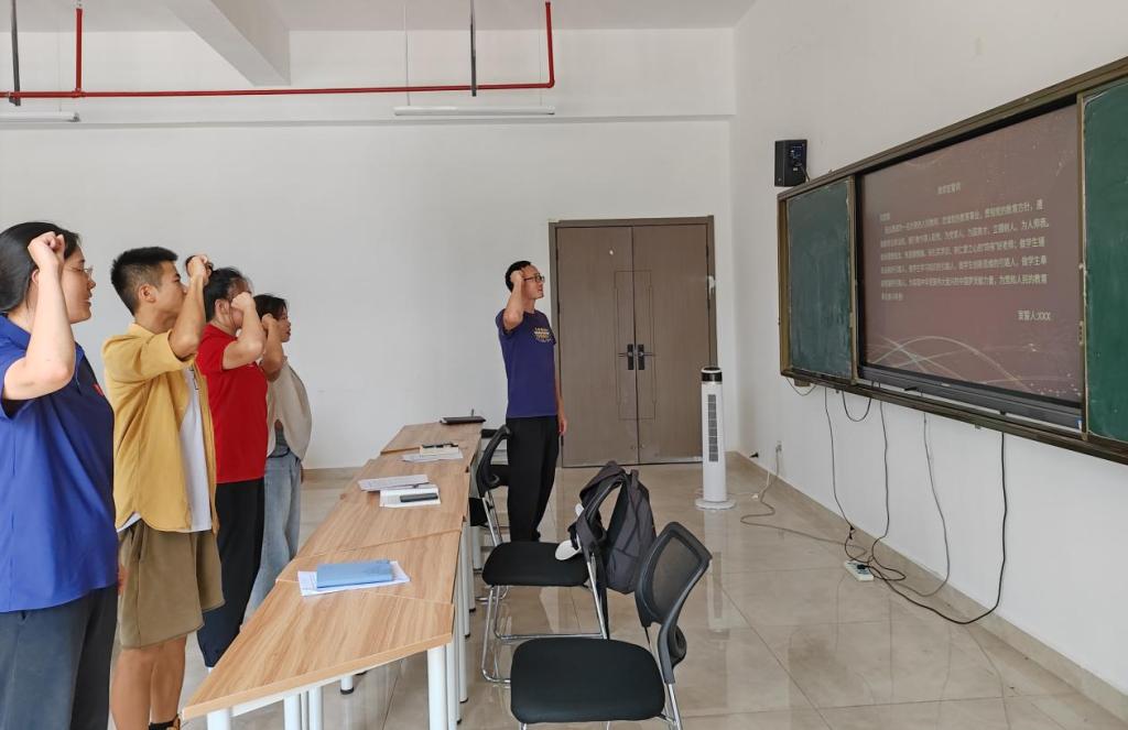 公司教学科研管理科科长彭召方作为教师代表,带领公司2024年新进教师开展了教师入职宣誓,公司组织全体教师签署了师德师风承诺书。
