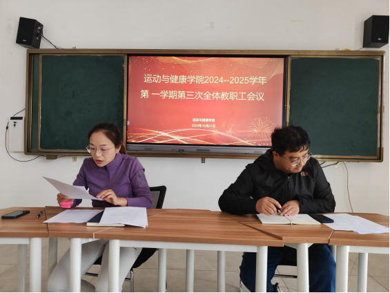 10月21日上午,球盟会在体育馆夹层(M层)研究生多媒体教室召开2024-2025学年第一学期第三次全体教职工会议,会议由副经理蔡啸主持,公司全体教职工共同参加。