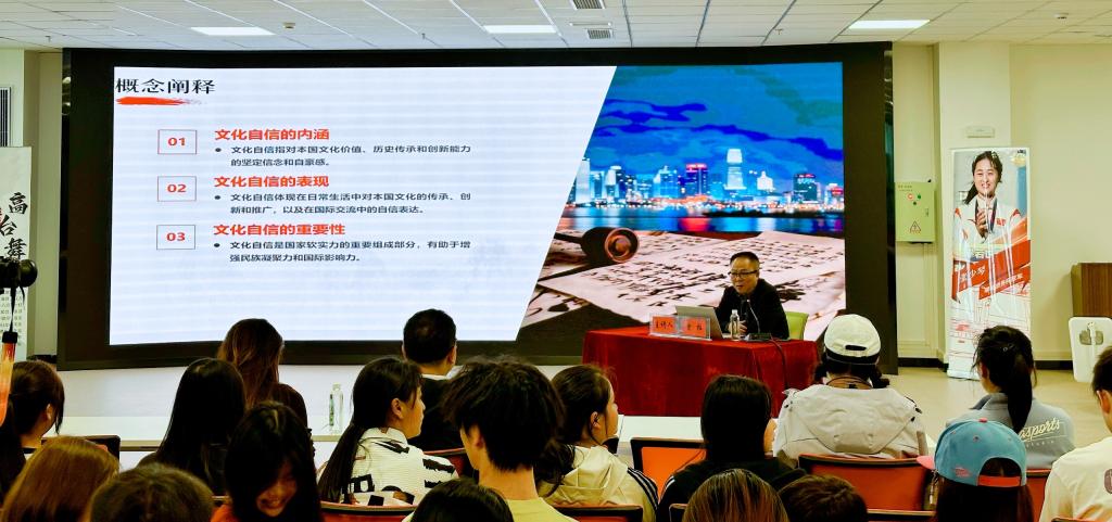 曾柱教授以其幽默风趣的语言风格、深入浅出的讲解方式赢得了现场师生的阵阵掌声,为同学们埋下了文化自信的种子。他寄语同学们,要以青春之力传承文化薪火,在体育强国建设中彰显文化自信,成为有理想、有本领、有担当的新时代青年。