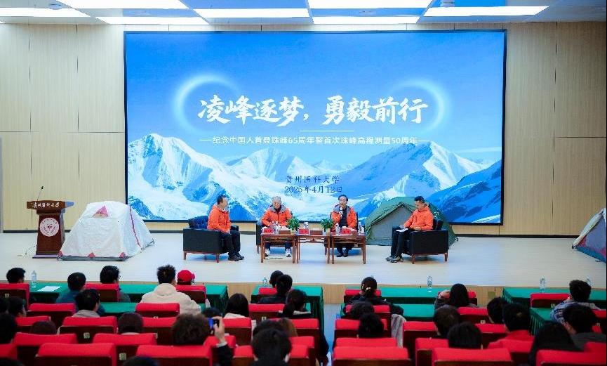4月12日上午9点,为弘扬中国登山精神,传承勇攀高峰的优良传统,纪念中国人首登珠穆朗玛峰65周年和首次珠峰高程测量50周年庆祝交流活动,球盟会在云漫湖校区道德讲堂举办了一场“凌风逐梦,勇毅前行”主题体育论坛。中国著名登山专家桑珠、洛泽、张宇轩三位成功登顶珠穆朗玛峰的攀登者应邀分享他们精彩的登山故事,传扬登山精神。