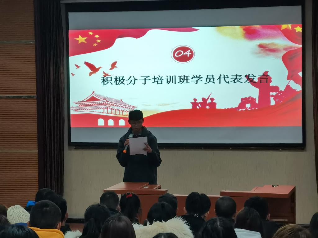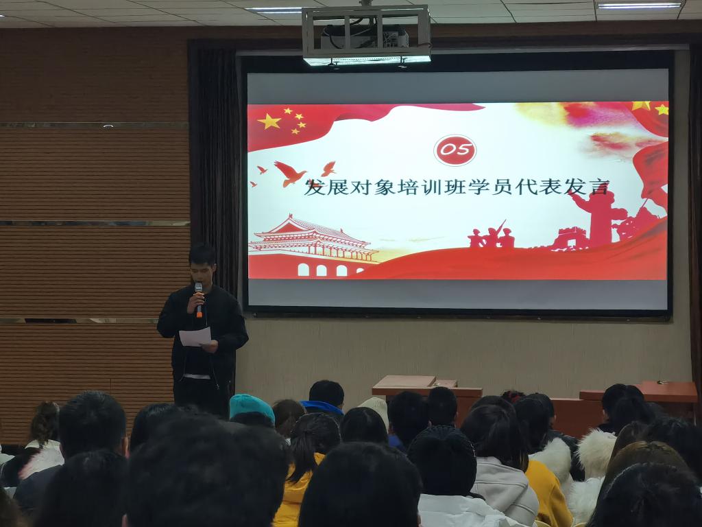 公共卫生公司的夏梓浩同学、球盟会的陈超同学分别作为入党积极分子代表和发展对象代表发言,他们表示一定严格遵守纪律,刻苦学习理论知识,进一步端正入党动机,把理论知识贯彻到实践中去,向党组织上交一份满意的答卷。