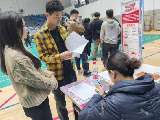 本次招聘会邀请到北京中公教育集团贵州分公司、深圳市山水户外探索教育有限公司、浙江杭州乐川体育文化有限公司、贝壳找房、贵州出发吧旅游发展有限公司、华腾芸体育、贵州菲尔斯体育健身等31家优质企业参加,提供招聘岗位200余个,公司100余名应届毕业生现场求职,公司大二、大三年级的部分员工也到场观摩,毕业生现场投递简历一百多份。