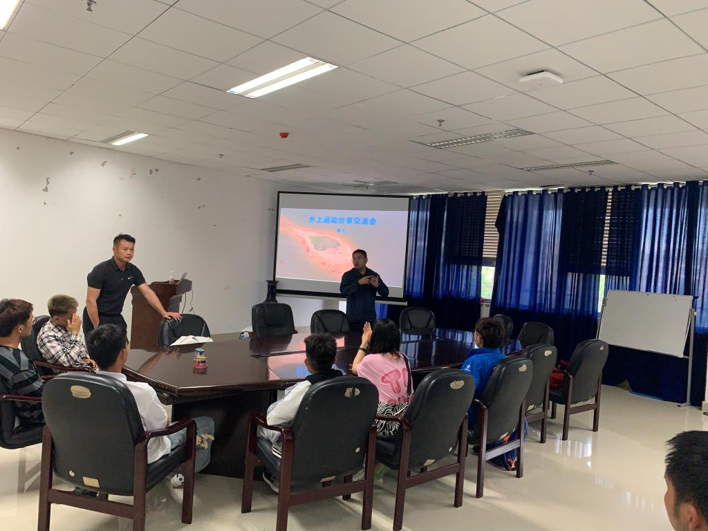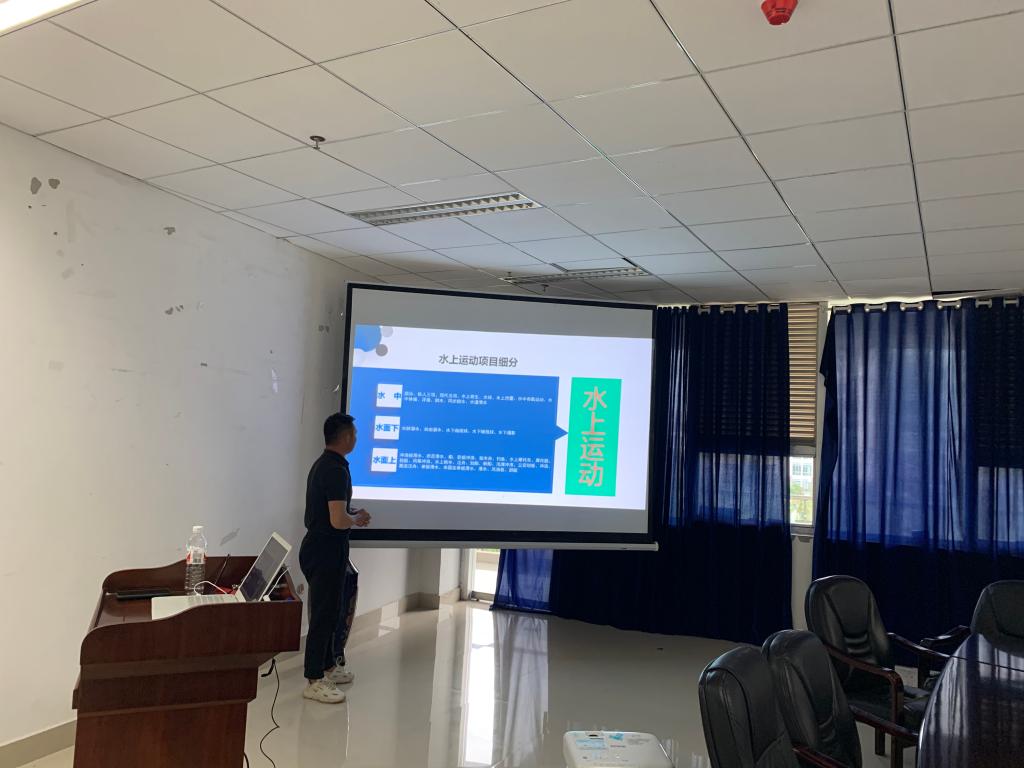 为进一步促进公司员工对专业知识的了解,提升员工对专业的认知度和兴趣度,6月3日下午,球盟会“有易思”工作室在体育馆三楼会议室举办了以“水上运动分享”为主题的第二期体育文化知识大讲堂。本次活动特邀球盟会户外教研室老师宋义进行主讲(游泳中级教练员,考评员,救生员;全国高校首期皮划艇团队班教练员,全国皮划艇俱乐部教练员导师、贵州省第一届OP帆船教练员、贵州省龙舟协会教练员、裁判员,排版可单独插入简介),工作室负责教师周小援及部分大一同学参加,活动由员工管理科科长蔡啸主持,