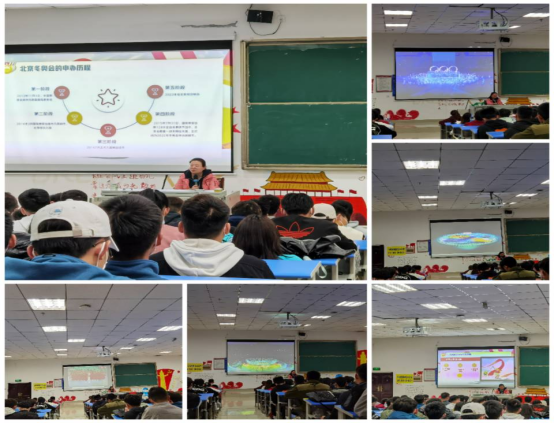 班会课上,2021级辅导员吁莉,利用视频、课件等方式为员工详细介绍北京冬奥会的相关知识,介绍了北京冬奥会的申办历程与背后不为人知的感人故事。通过文字与视频的结合,为员工讲述了北京2022年冬奥会和冬残奥会主题口号正式发布——“一起向未来”( 英文为:“together for a Shared Future”)该口号的内涵,诠释了更快、更高、更强、更团结的奥林匹克格言的中国方案,表达了世界需要携手走向美好未来的共同愿望,“双奥之城”北京也又一次给奥林匹克运动留下了中国印迹,体现了体育、民族和国际主义精神。