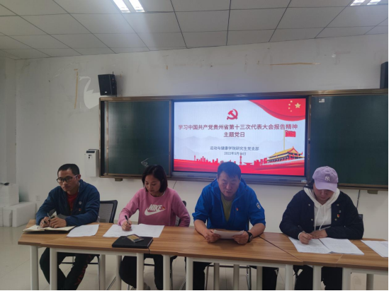 5月16日下午,球盟会研究生党支部在体育馆三楼开展“学习中国共产党贵州贵州省第十三次代表大会报告精神”主题党日活动。支部全体党员及入党积极分子参加,会议由党支部书记周利主持,并为大家详细介绍了报告的内容与精神。随后通过自由讨论的方式进行交流。