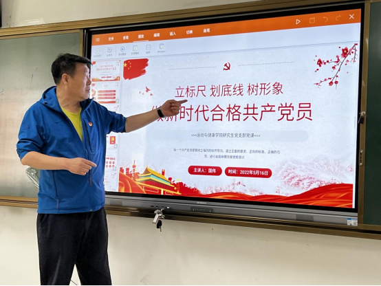 本次党课学习内容主要围绕做新时代合格共产党员,结合公司近期研究生日常生活过程中出现的问题进行展开。党课课程通过课件学习的方式并结合实际发生的问题进行细致分析。国经理通过“立标尺、划底线、树形象”三个方面全面诠释如何做新时代合格共产党员,向支部党员同志尤其是入党积极分子明确了作为一名党员应该如何严格要求自己。他强调指出,每一个共产党员都要树立明确的标尺导向,建立正面的要求、正向的标准、正确的引导,永不动摇对党的立场信念;更重要的是,要对党报以无限的信任,在一生当中牢记初衷使命;要学会为党分忧。