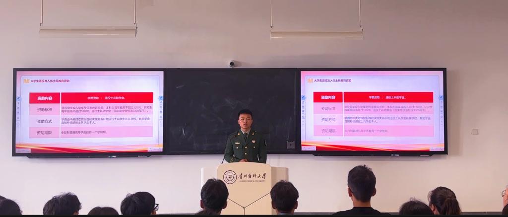 活动期间,带领员工观看征兵宣传片与资助政策宣讲视频,热血画面深深震撼了每位同学。会上辅导员与宣讲团将退役复学员工学业优惠政策、参军入伍政治经济待遇等政策进行了详细的解读和讨论,让学子们进一步了解了国家资助政策设立的初衷和目的意义,让资助政策家喻户晓、深入人心。同时,也让学子们进一步感受到国家对一代又一代青年学子的重视与用心。从而引导学子们“听党话,跟党走”,珍惜国家的资助政策,用自己的使命与担当,回报社会的关爱与支持,也激发学子们为梦想奋斗的决心和信心。