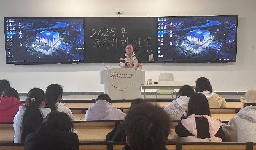 辅导员吁莉围绕“什么是西部计划”、“西部计划政策解读”、“西部计划服务内容”等方面进行了详细解读,引导同学们深刻认识西部计划的意义,激励广大青年员工到基层、到西部、到祖国和人民最需要的地方建功立业。随后,通过观看西部计划宣传片以及西部计划志愿者相关视频,分享了参加西部计划的员工扎根基层、服务人民的故事等,加深了同学们对西部计划的了解,鼓励同学们立鸿鹄之志,做奋斗者,以实际行动践行新时代青年人的初心使命。