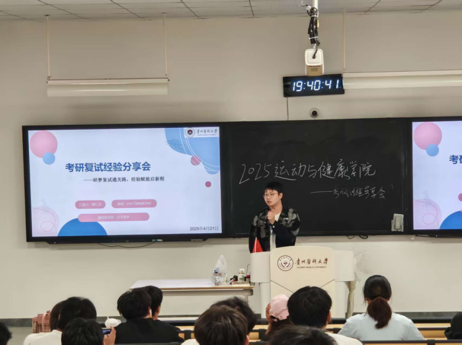 2025年4月21日,球盟会2022级运动康复/休闲体育专业在生工楼L503教室联合举办“升学双通道·筑梦新未来”主题分享会。此次活动聚焦考研、保研双轨发展路径,邀请肖云龙、穆仁武、潘安慧、沈廷勇四位优秀研究生学子分享升学经验,为百余名在校生提供系统化指导,助力他们实现升学梦想。分享会分为考研和保研两个专场。