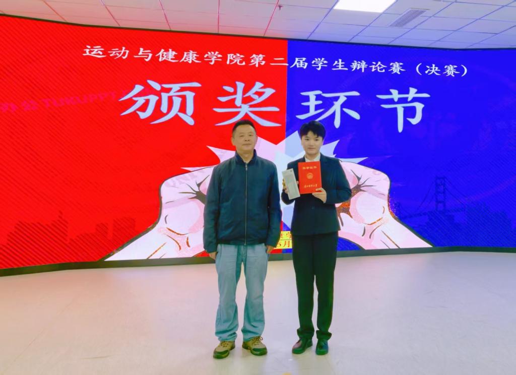 本届赛事以“对话百年·青春三辩”为主题(一辩责任担当,二辩创新求索,三辩理想践行),经过激烈角逐,2022级社会体育指导与管理(专升本)班摘得桂冠,其辩手李玲子荣获“最佳辩手”称号。